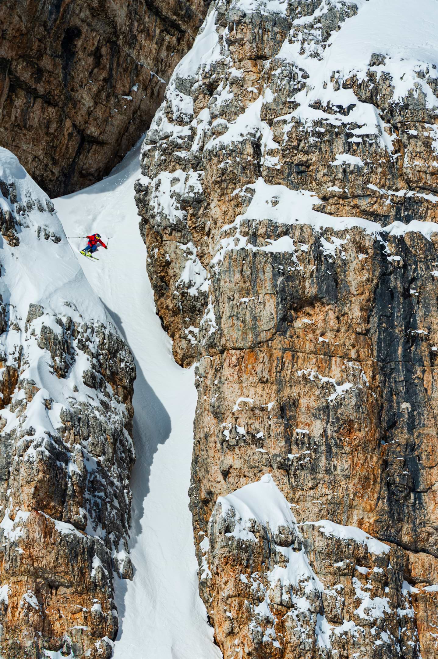 When it’s storming outside, locals head to Cinque Torri, where the skiing is better sheltered. Although the area appears small and tight from the bottom, it’s like a Russian doll that not only opens up to the “five towers” named after it but also offers a treasure trove of gully and slot ski runs.
