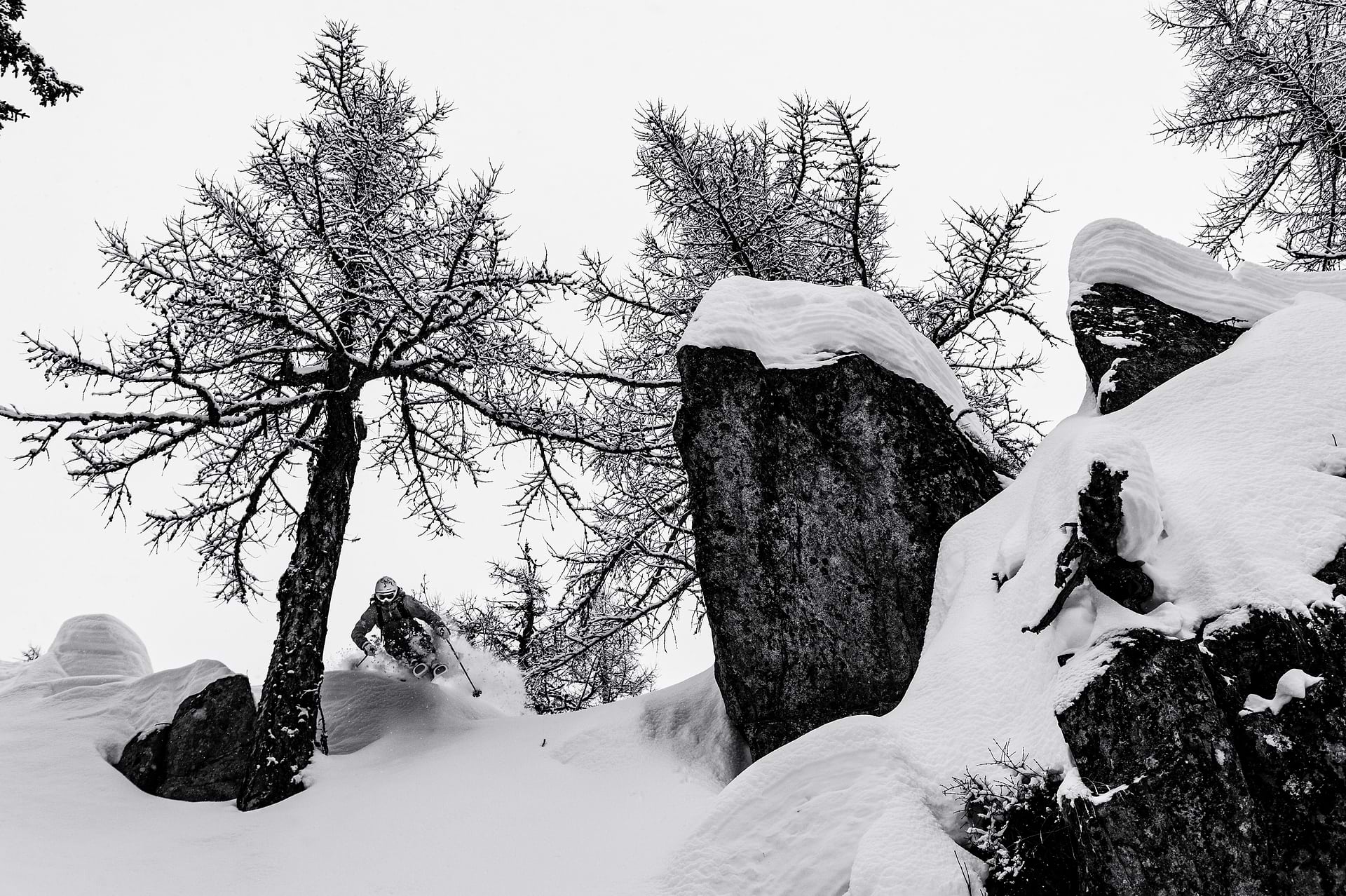 open powder bowls segue into some of the best tree-skiing in the Alps — slope-to-bench after slope-to-bench of open larch forests that deliver you to the valley bottom and a short shuffle back to the lifts through a scenic rural landscape.