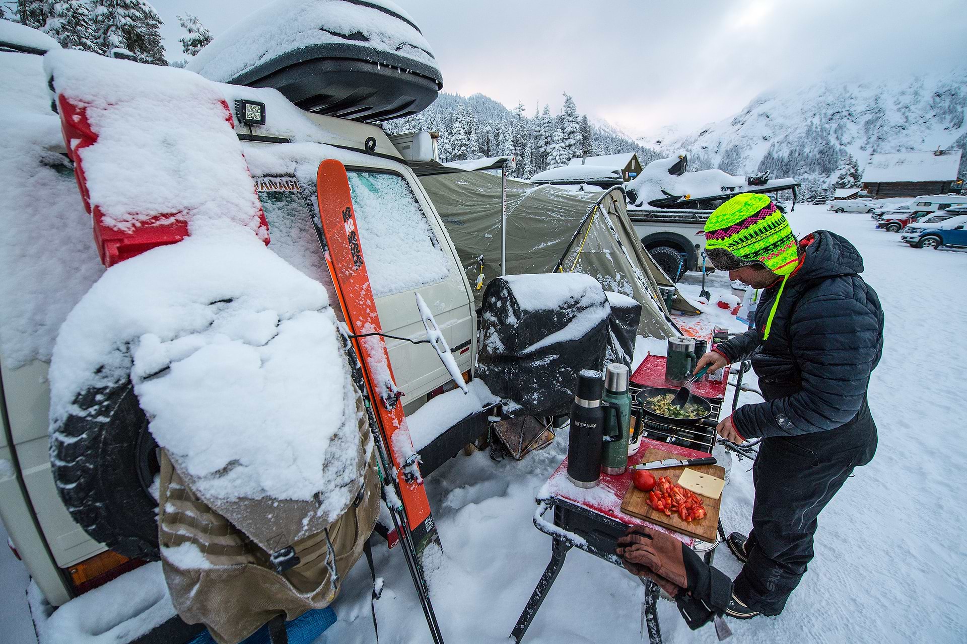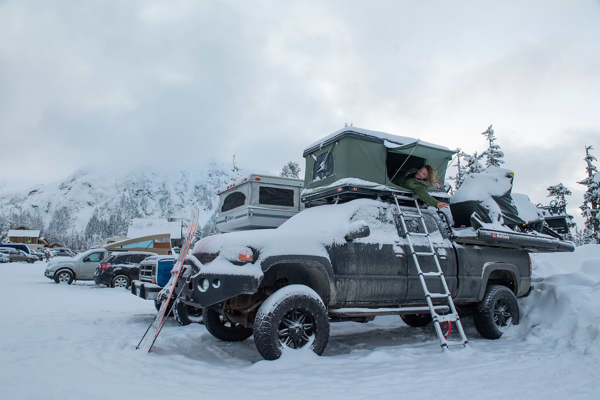 To reach Mount Cain from Vancouver, fly to either Nanaimo or Campbell River and continue by car. Alternatively, take a ferry from the mainland and drive north on the island. From Nanaimo, the most common starting point, it’s about three hours to the Mount Cain turnoff on Hwy 19, followed by another 30 minutes on a gravel road. The website warns visitors traveling from the south to avoid using Google Maps, as these can invariably lead to getting lost. Additional instructions state that tire chains are mandatory (you aren't allowed to proceed without them) and to “Bring a shovel — you may need to dig your car out.” Bring your own winterized campervan and join the village scene in the parking lot, or plan to stay in one of the basic cabins or the rustic hostel. Don’t expect restaurants, groceries, or a karaoke bar.