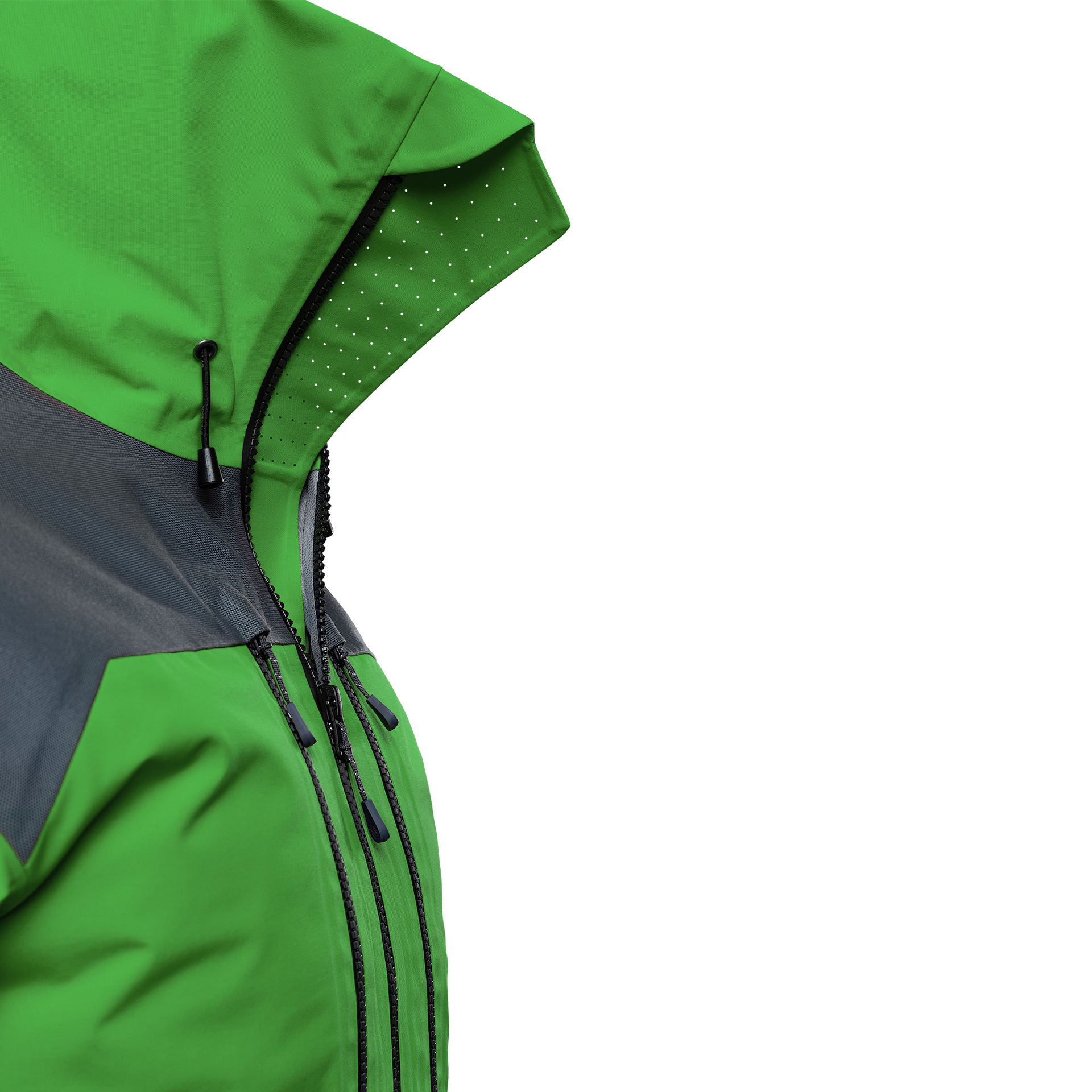 With this shell we are proud to introduce a Japanese DermizaxNX 3-layer nylon fabric that is not only extremely durable, completely waterproof, completely stormproof and highly breathable — but also 100% recycled.