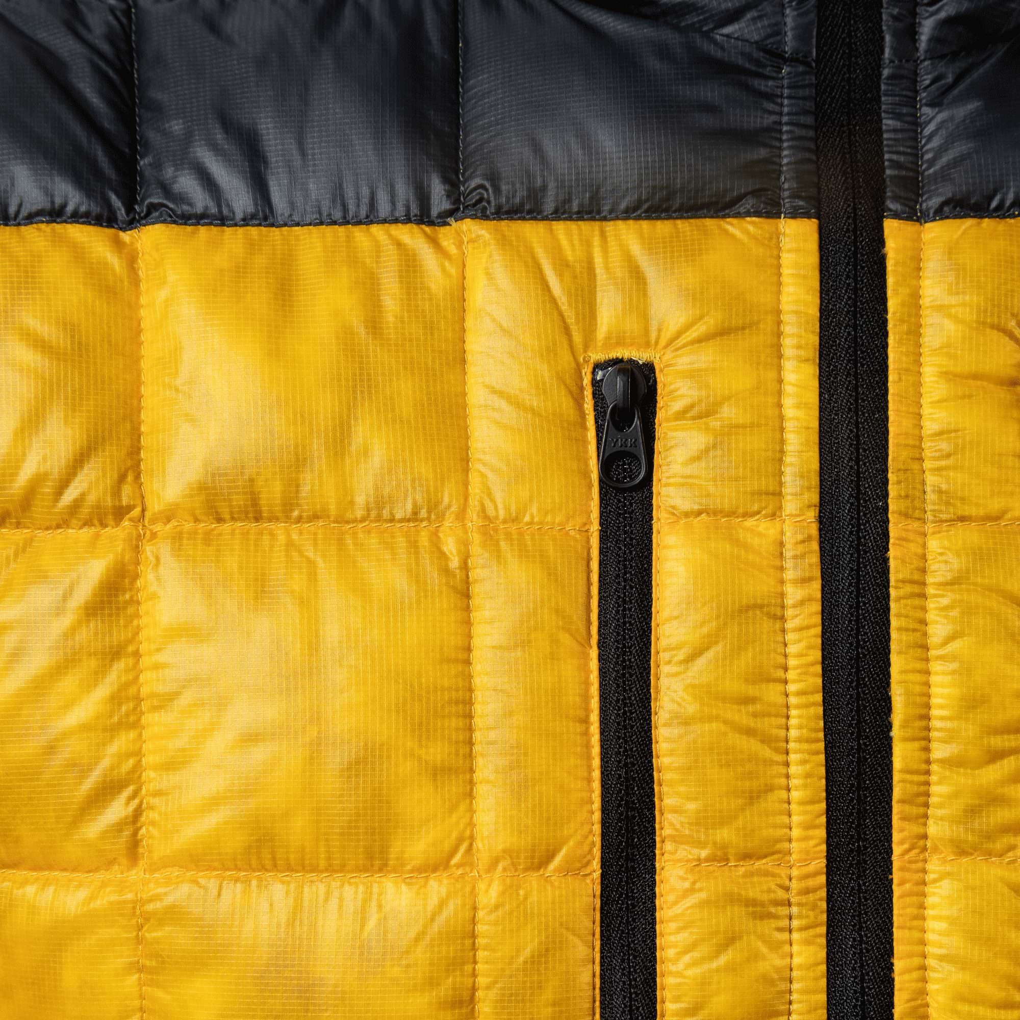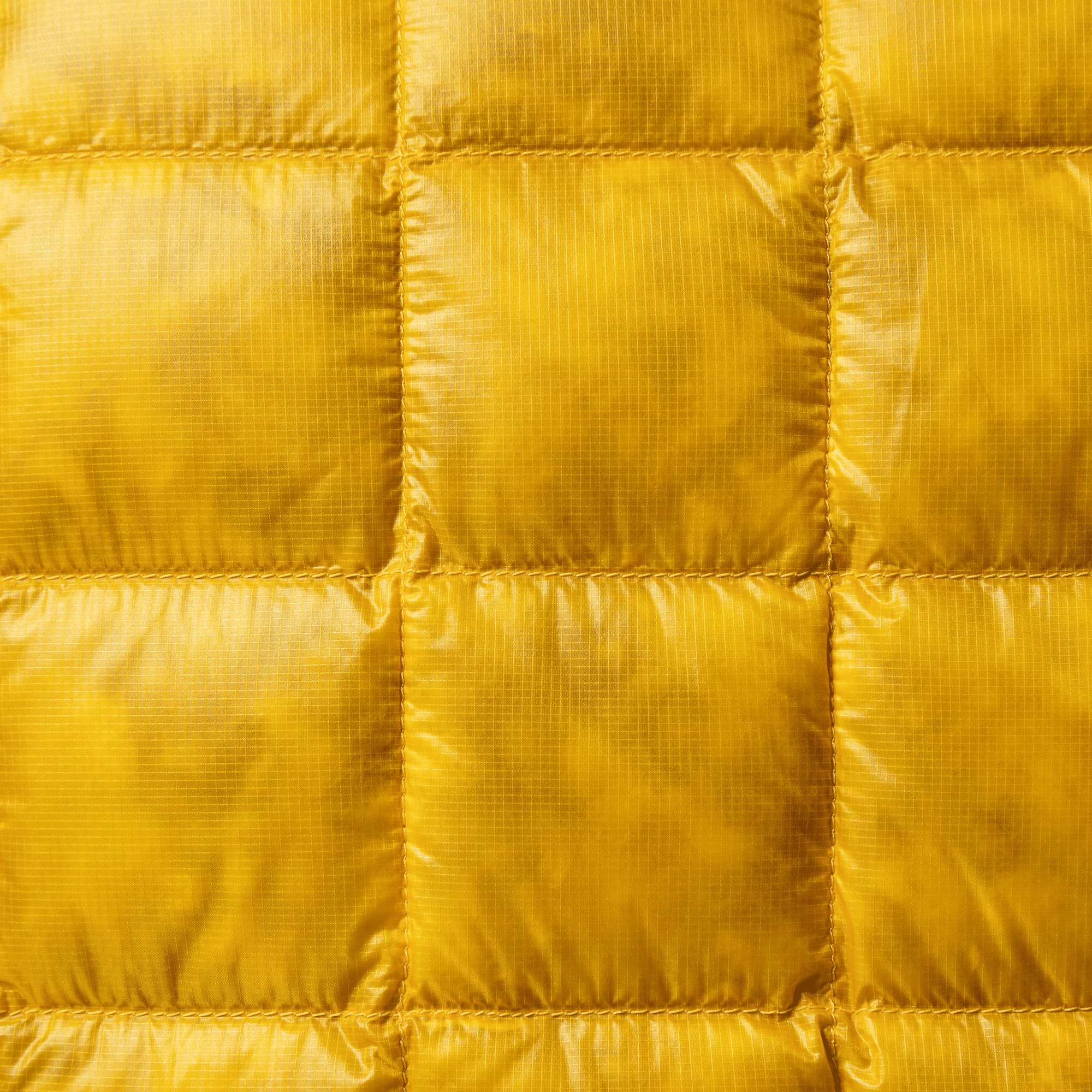 At 262 g (size M), this is one of the world’s lightest down hoodies, with an outstanding down-to-weight ratio of 40%. The hoodie is filled with previously unattainable 1010 fill power 98/2-quality ethically sourced European goose down that is RDS-certified, Bluesign-certified and PFC-free. It is covered in a Japanese technology 100% pre-consumer recycled 10-denier nylon ripstop, weighing a featherlight 28 g/m2 and so thin that you can see the actual down clusters through the fabric.