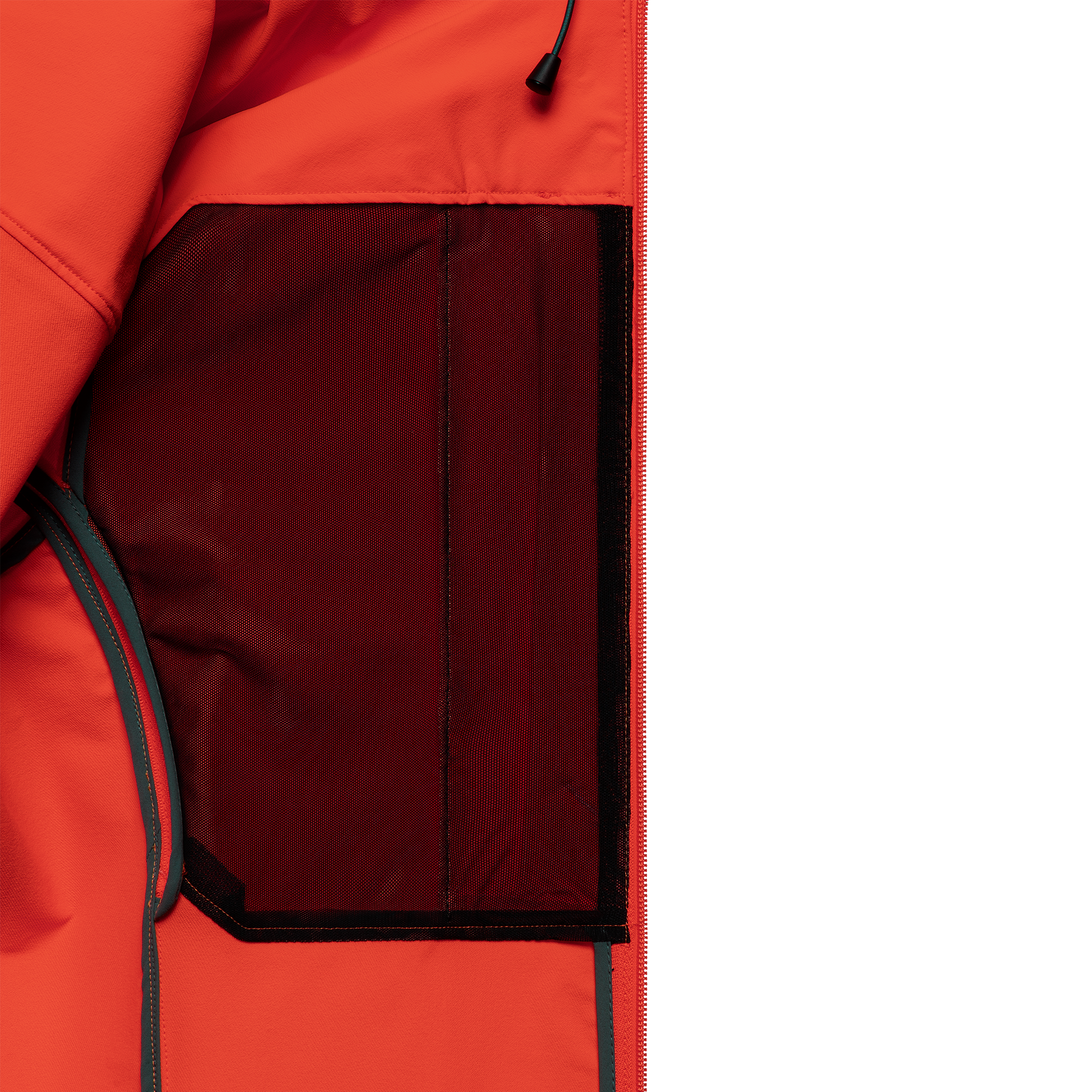 Ventilation: Zipped ventilation in sleeve construction. Mesh fabric on inside of chest pockets.