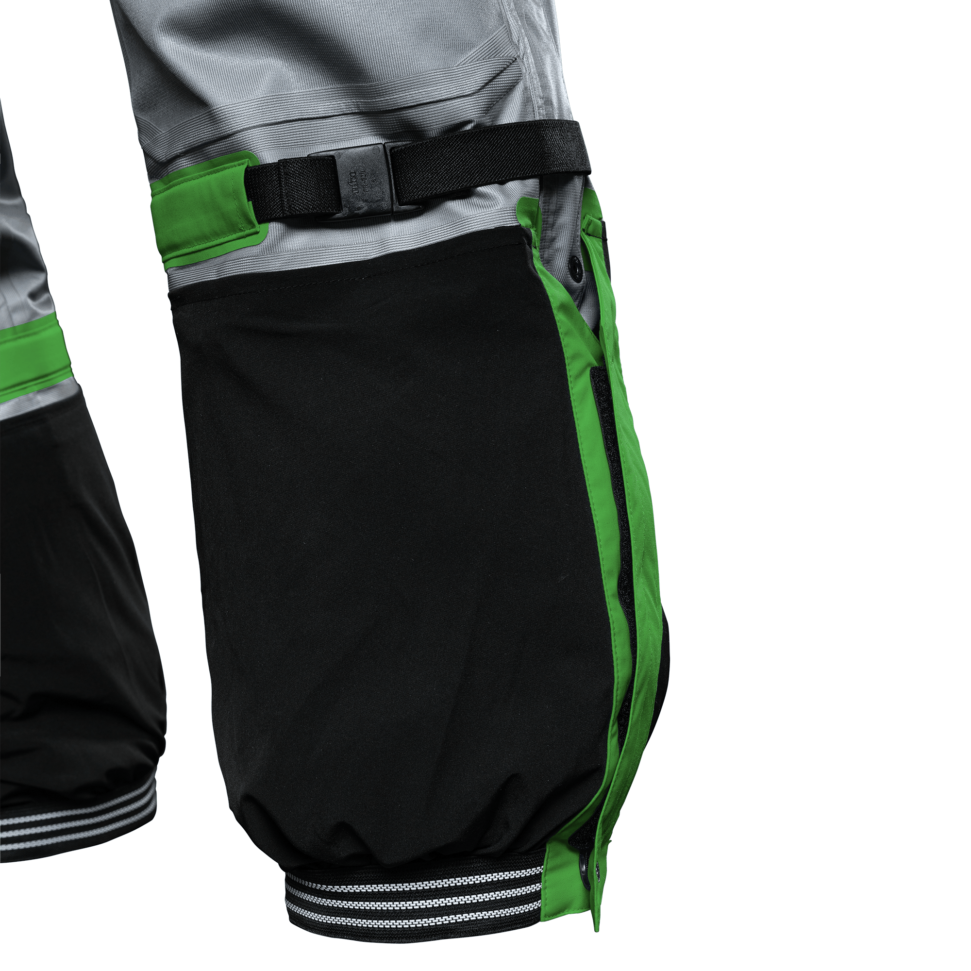 Pockets: Two zipped leg pockets, one equipped with loop for transceiver.