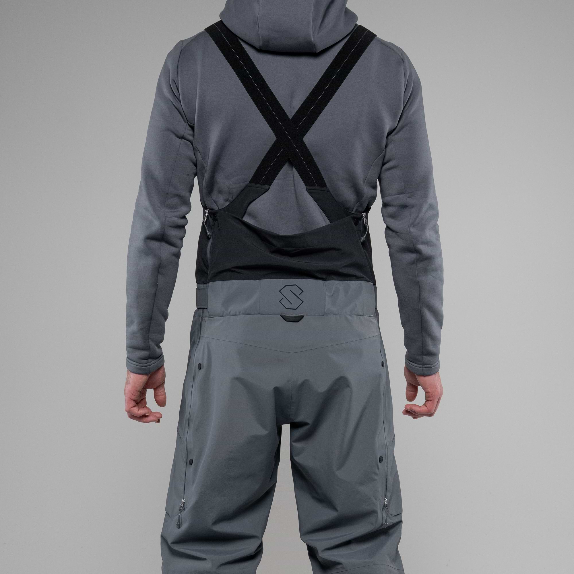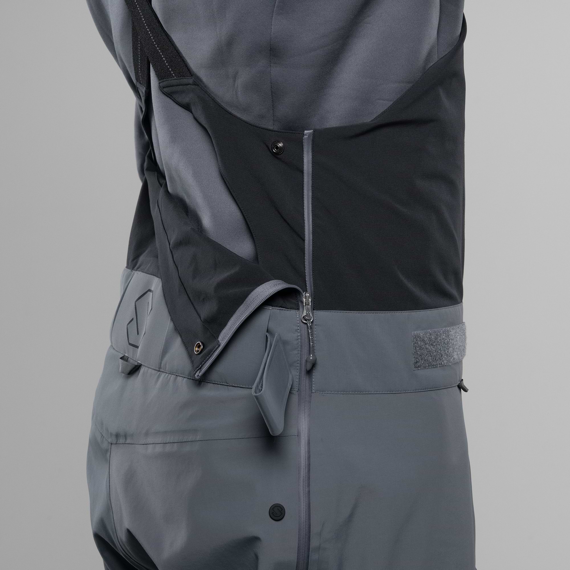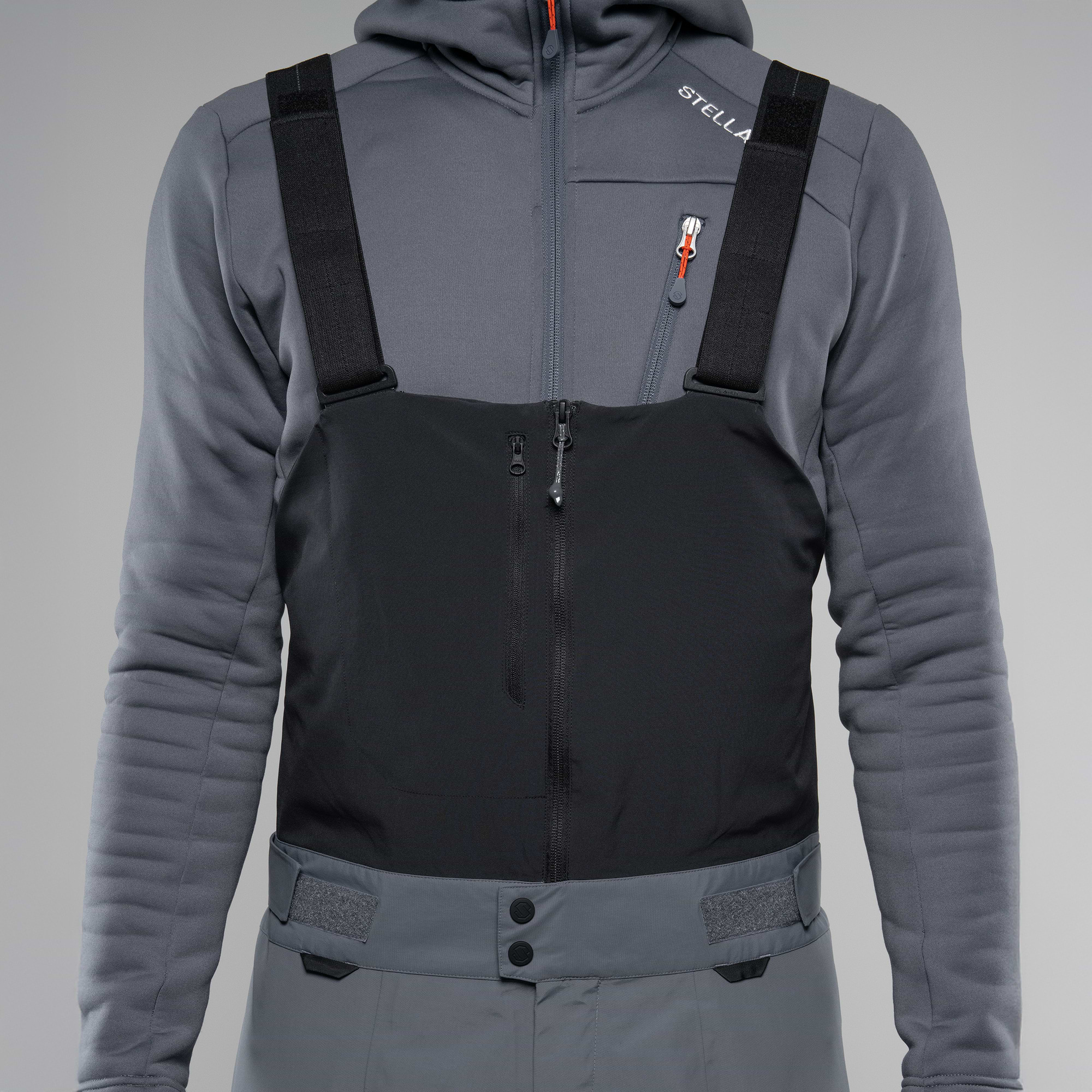 Waist / Bib: Stretchy bib part with adjustable suspenders and zipped pocket with internal tranciever loop. Velcro adjustable waist for perfect fit.
