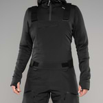 Waist / Bib: Stretchy bib part with adjustable suspenders and zipped pocket with internal tranciever loop. Velcro adjustable waist for perfect fit.