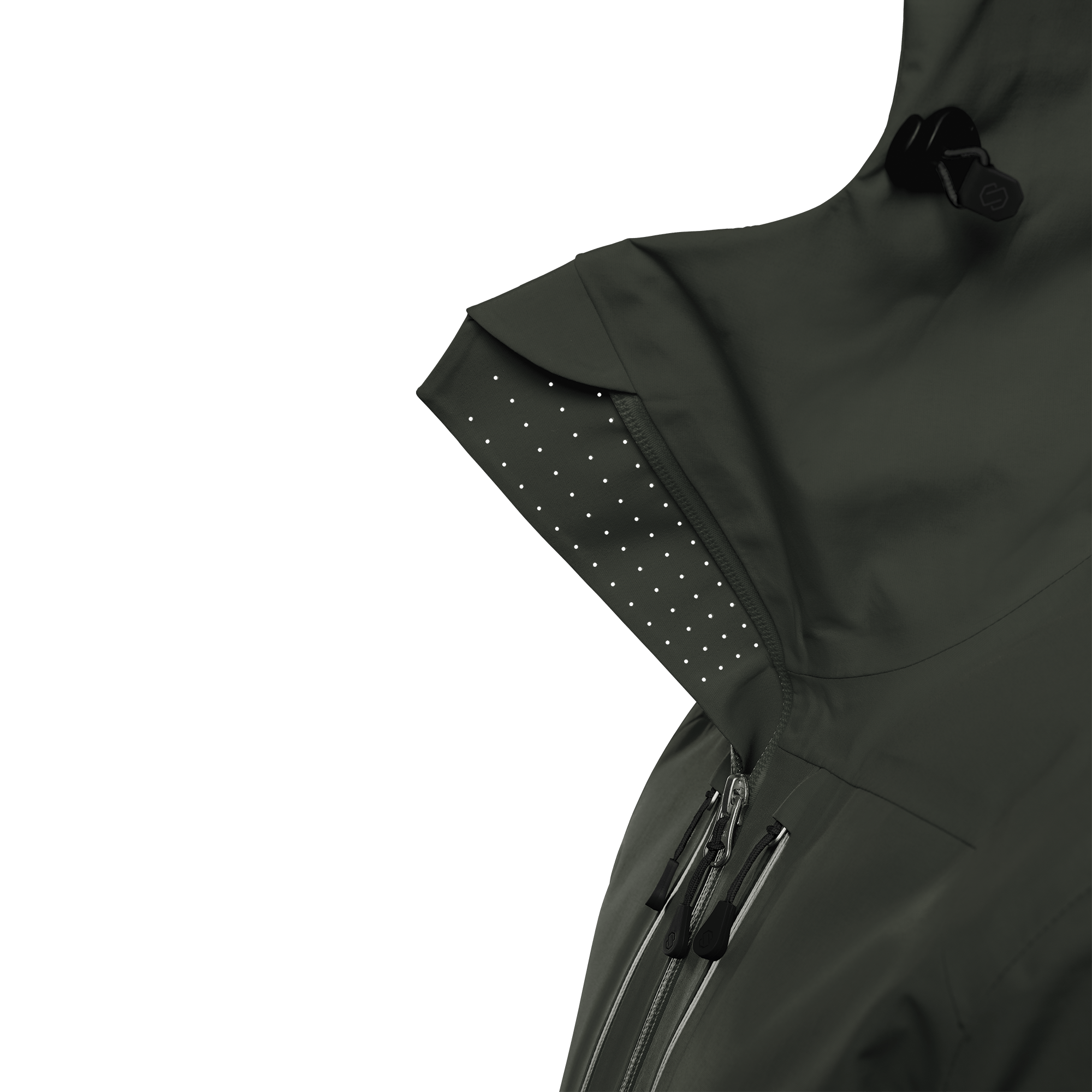 The YKK AquaGuard® 2-way ventilation zippers are noticeably enlarged and repositioned for easier access and increased performance. All zippers are stitched for improved durability, and the collar is redesigned with laser-cut ventilation holes on the front placket.